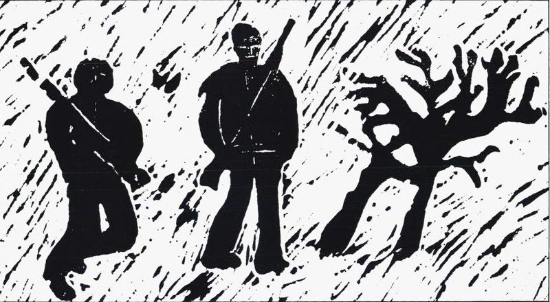 De leigga guokte rievssatbáhčči, vázziba rievssatváriin gaskal Ivgobađa ja Olmmáiivákki. De bođiiga uhca rievsatmoađáš guovdu, riemaiga bivdit ja bođiiga báhčádahkii; de bážiiga ja oruiga iežaska mielan deaivan goappát giruna. De vulggiiga váldit girunild, muhtte girdiledje eabage ožžon. De vuot vulggiiga giruniid ochat. De gávnnaiga vuot en ja de bážiiga nu lahka ahte dolggit manne aktat borgan, ja de jáhkiiga: gal soai gottiga. De čuoččaheaigga ja luđiiga bissuideskka ja vuggiiga, go valbmaneigga, dieid giruniid váldit, muhtte girunat girdiledje. De dadjá nubbi: